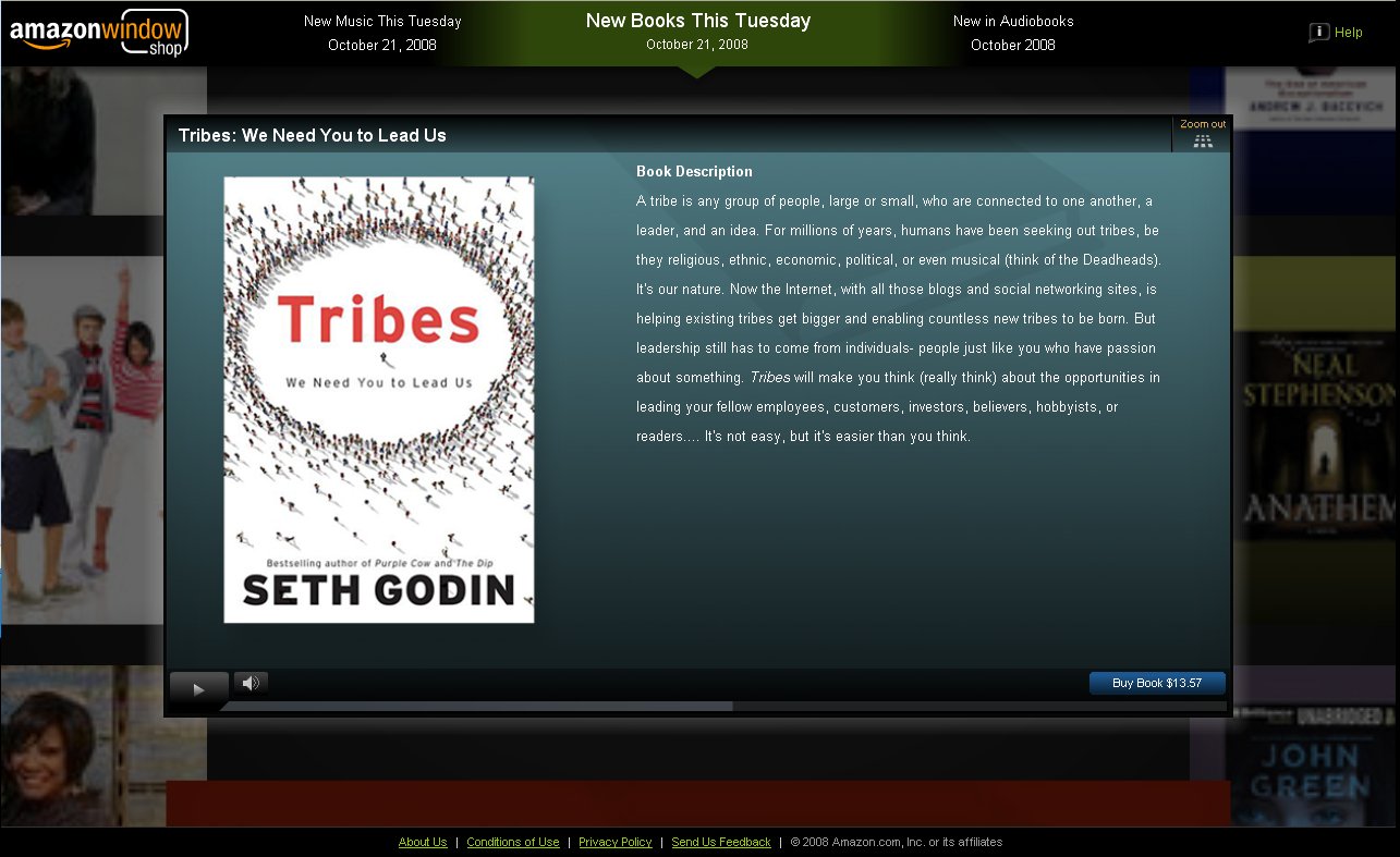 The information being presented is OK, as I am not sure how many people need to know what is being released every week. However, the presentation is amazing. Generally, I hate flash-based sites because it is normally overkill for displaying a menu or something equally silly. Amazon, took a different approach and created an “immersive experience” that you can navigate using your keyboard.