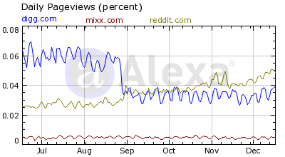 It has been a while since I looked at the state of social news sites. Given that they have been in the news in the past few months, I figured it is a good time to review them again. At this time, we are only looking at Digg, Mixx and Reddit. I previously included Propeller, but it is no longer active.